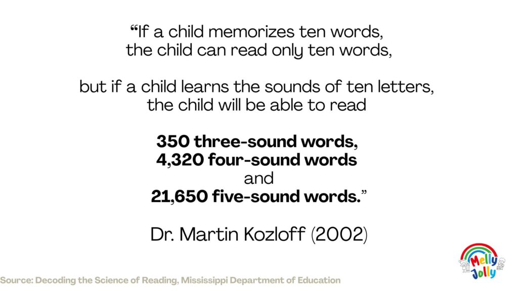 Много деца могат да разпознаят познати думи, защото са ги виждали многократно. Когато срещнат нова дума, се затрудняват. Мозъкът може да запомни определен брой думи като образ. Но английският език съдържа хиляди често използвани думи. Запаметяването не е устойчива стратегия. Затова детето има нужда от система – да разпознава звуковете и да ги свързва с буквите. Когато тази връзка е изградена, детето не разчита на паметта си, а на уменията си.