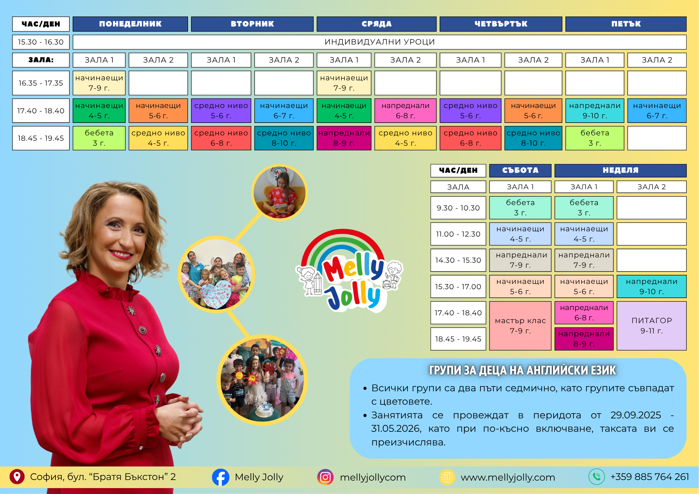 Melly Jolly e мястото, където Вашето дете ще получи персонализиран подход, надгради знания на английски език и намери нови приятели.